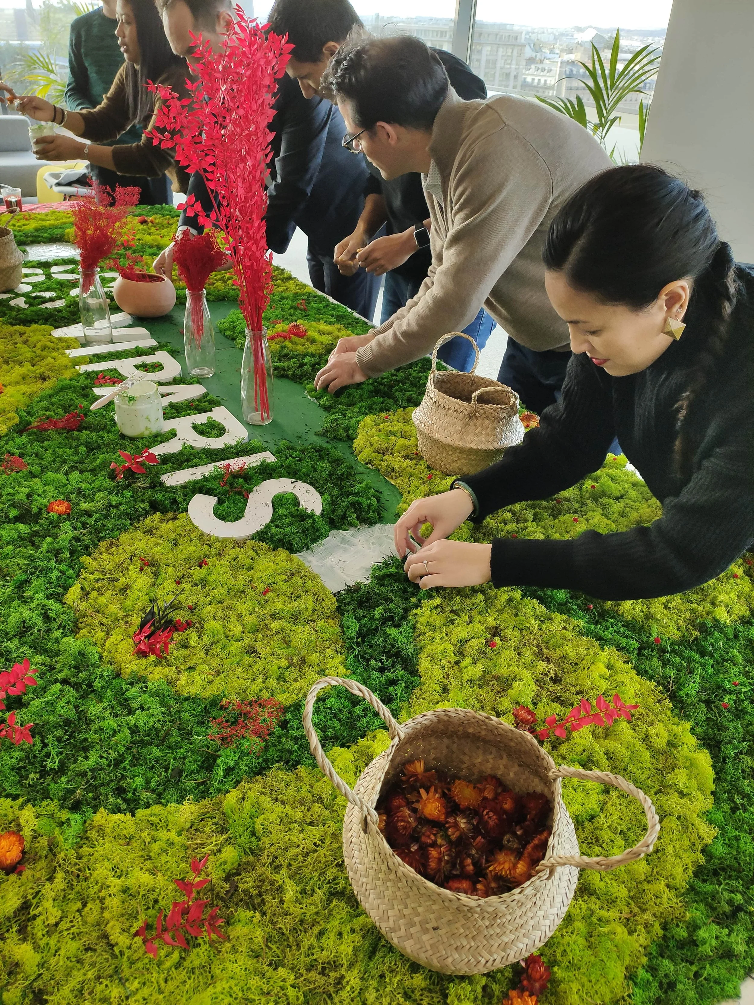 Le concept est simple : pendant cet atelier, tous les participants mettent la main à la pâte pour réaliser une œuvre végétale collaborative, sous formes diverses et variées : mur, cadre, logo... Les possibilités sont nombreuses ! Nous apportons tout le matériel nécessaire (support, végétaux stabilisés, colle, pinceaux etc…) et chacun réalise son petit carré de verdure.