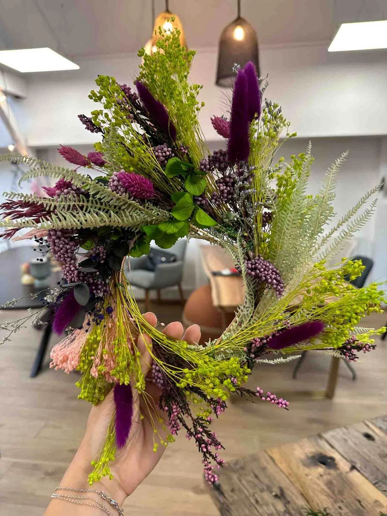 Au cours de cet atelier, plongez dans la confection de votre propre couronne végétale en utilisant des fleurs séchées de qualité. Guidés par nos artisans, vous apprendrez les techniques essentielles pour composer une couronne délicate, durable et personnalisée.